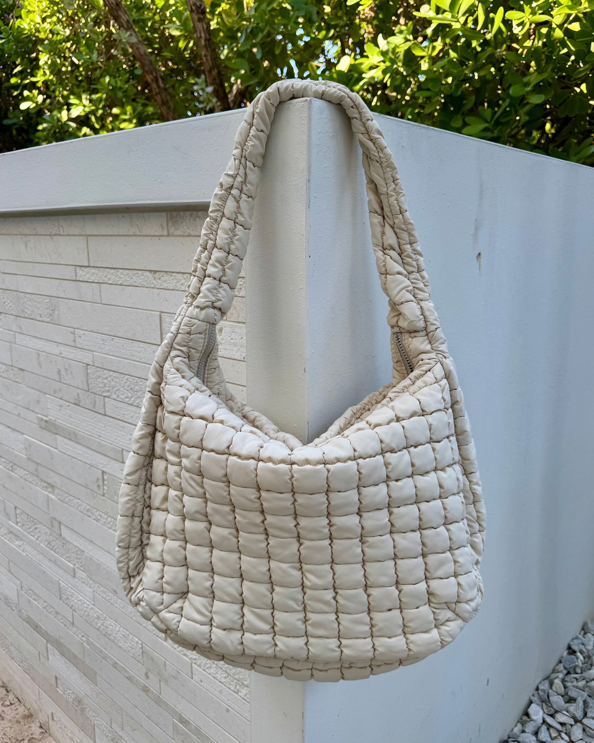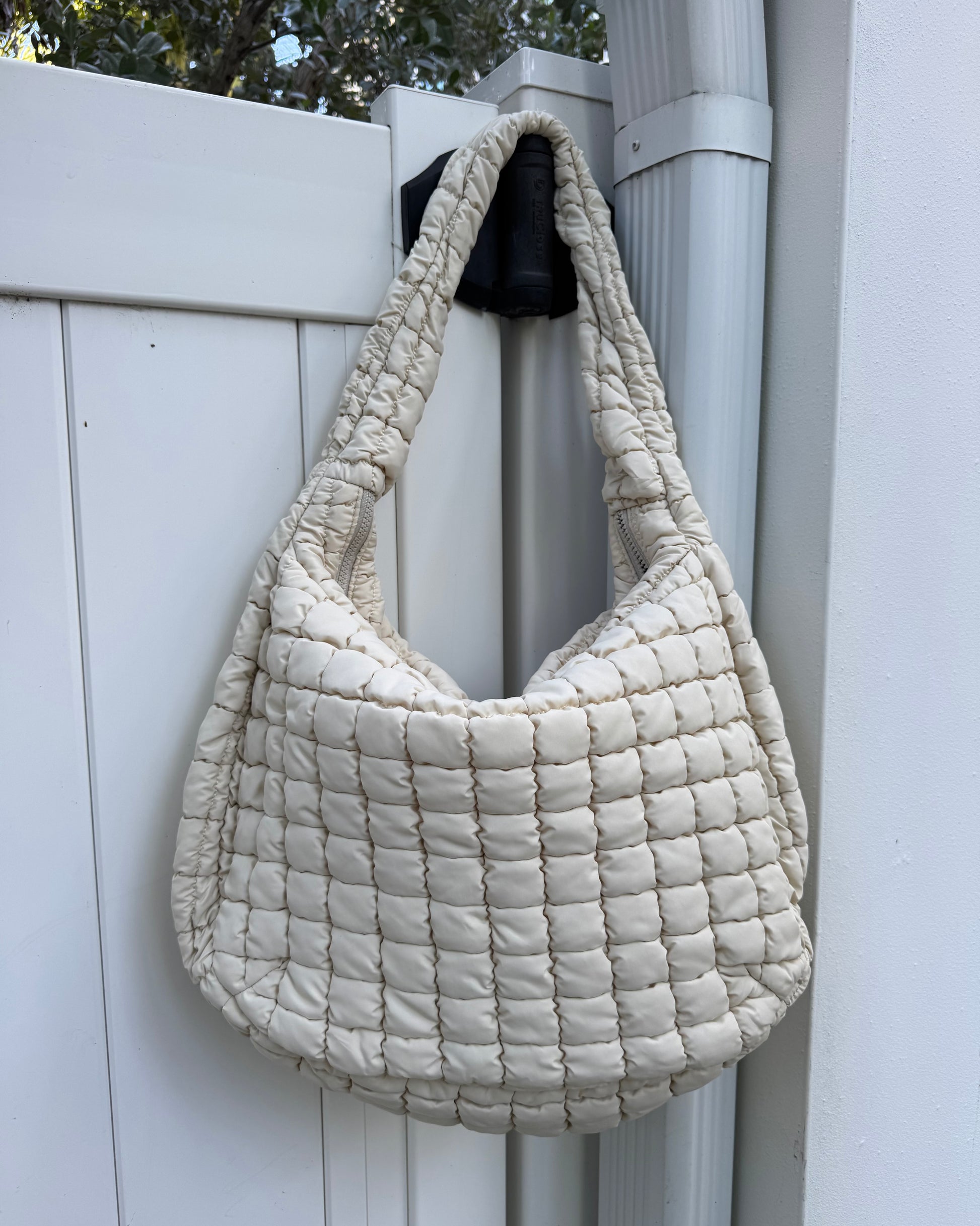 Black Friday: Natural Puffy Quilted Nylon Large Shoulder Bag