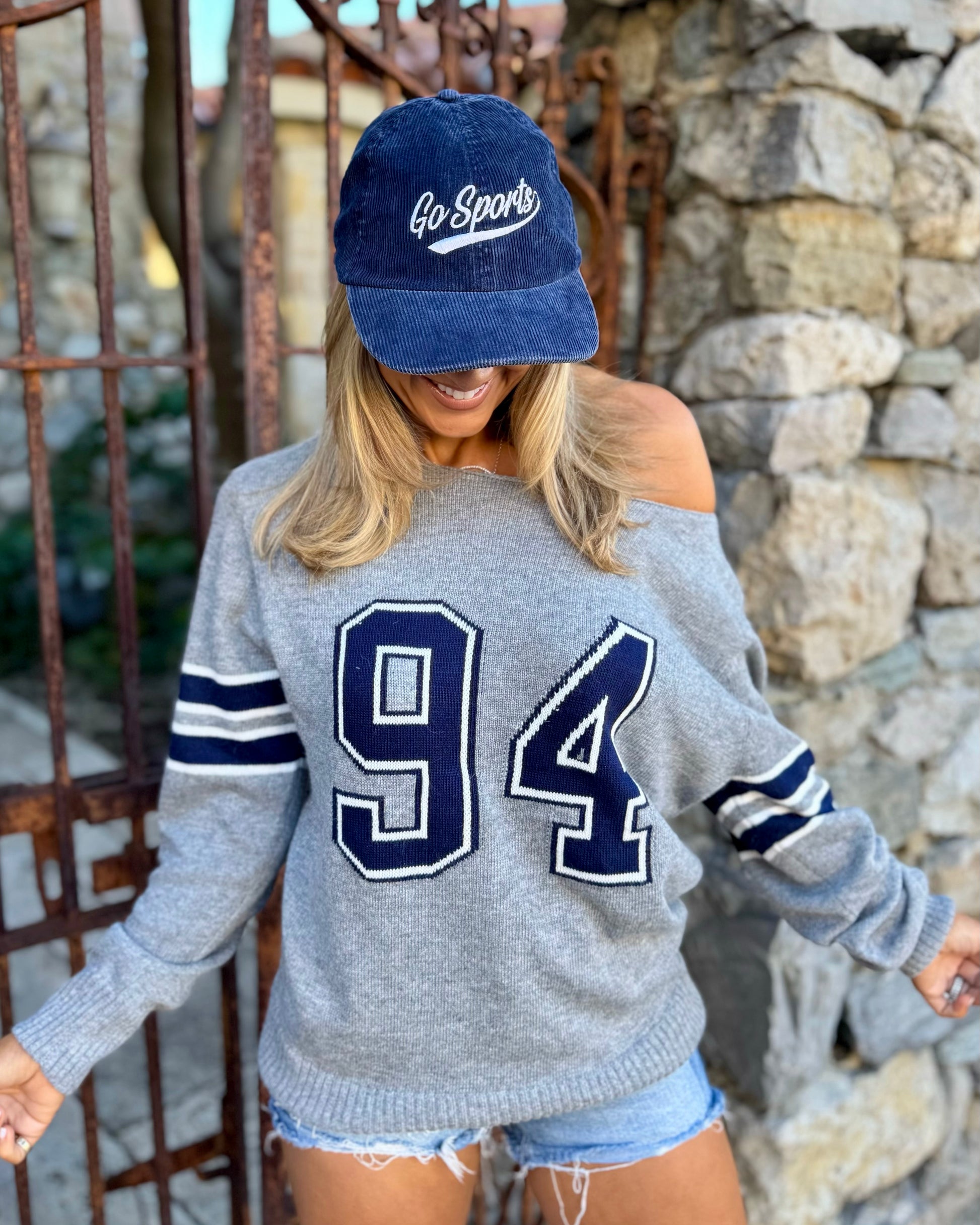 For the fans who love the vibe as much as the game. This corduroy cap features playful “Go Sports” embroidery for the perfect touch of effortless gameday attitude. Available in three classic colors—black, tan/brown, and navy—it’s easy to style with any casual outfit or team gear. The soft corduroy texture gives it that laid-back, vintage feel while the adjustable back ensures a comfy fit.
